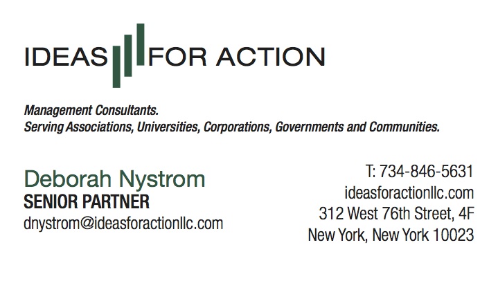 Deb is now a Senior Partner with Ideas for Action, a respected consulting firm, as of 2015