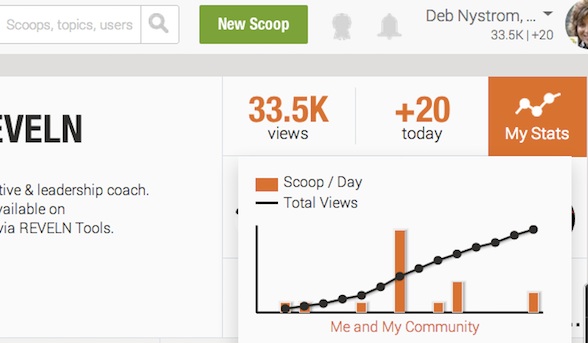 Analytics should be available on ANY good integration, social media tool. This one shows “Me and my community” on ScoopIt.
