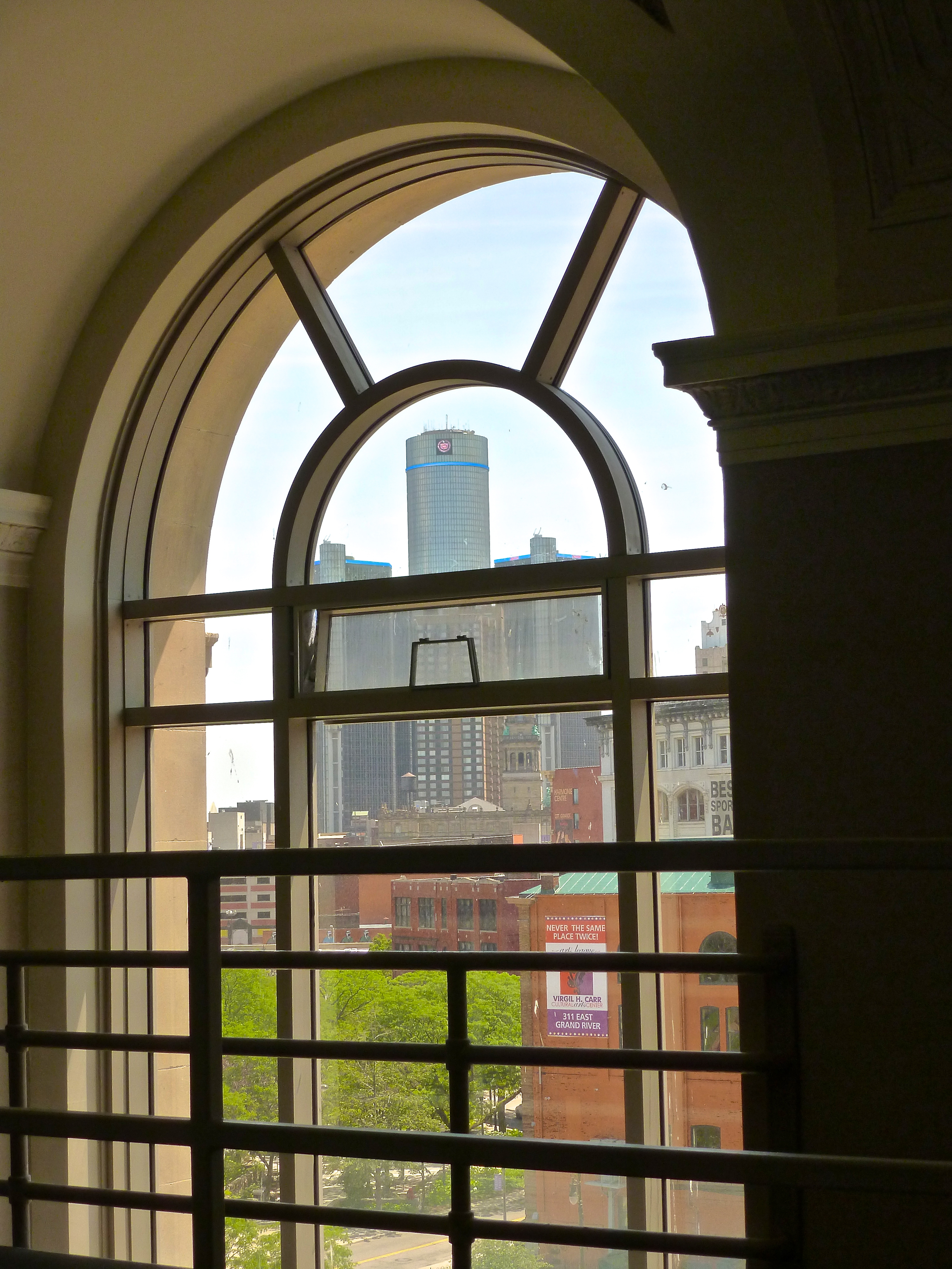 Previous Image Next Image Detroit Renaissance Center View of the Detroit Renaissance Center from within the Detroit Athletic Club, 2012