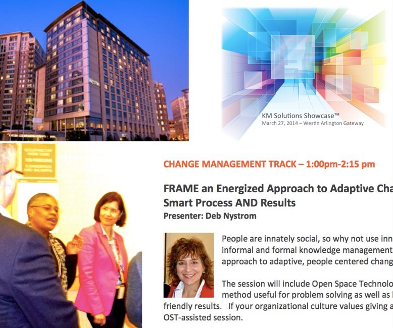 Previous Image Next Image Four photo, Program, Deb, KMI Session: FRAME an Energized Approach to Adaptive Change, Smart Process AND Lasting Results