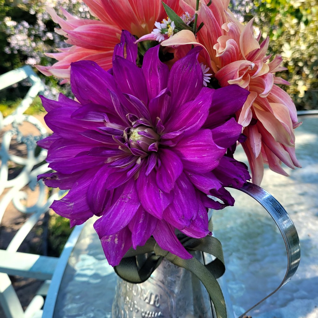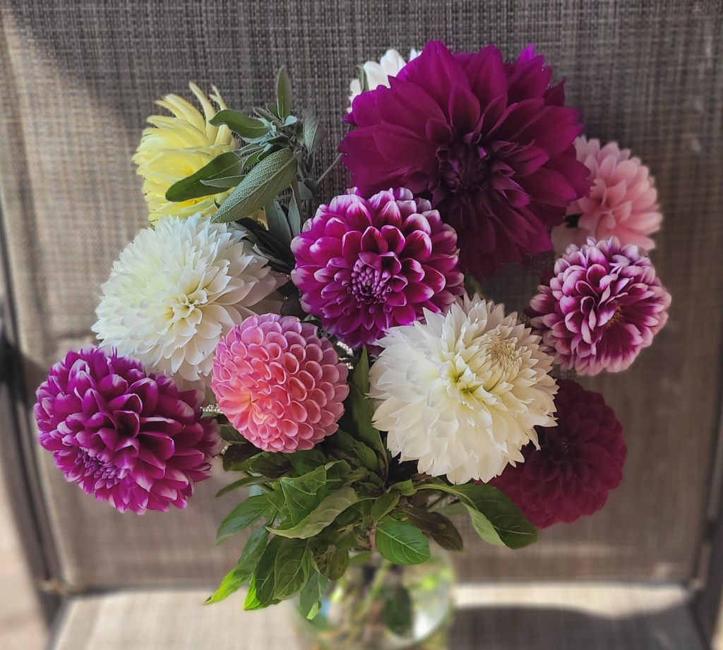 Flower events include flower and herb bouquets summer through October with seasonal flowers, herb and featuring dahlias in mini-and full size bouquets. Our heirloom tomatoes are also plentiful in August – September.