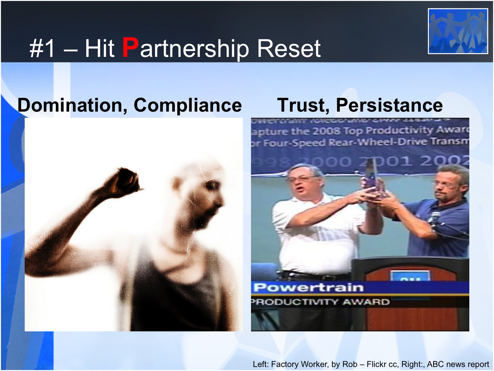 Previous Image Next Image Slide02 Partnership Reset, GM’s Powertrain Harbour Award (2008 Transmission) GM Toledo uses teams, 2014